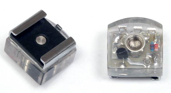 This optical slave is packaged in a convenient hotshoe.