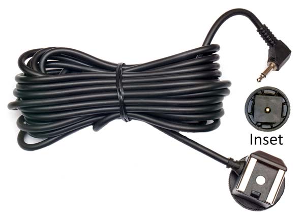 This cord also works with FlashZebra #0135, #0128 and #0156 hotshoe adapters.