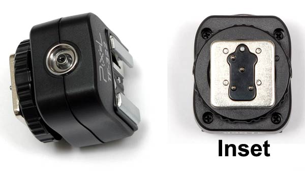 This adapter mounts on any Nikon camera that has a hotshoe. This adapter provides full iTTL function and allows you to plug in either a standard PC sync cord, or the special Screwlock PC sync cord.*